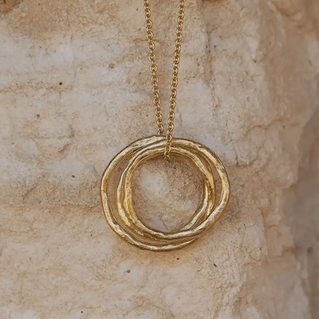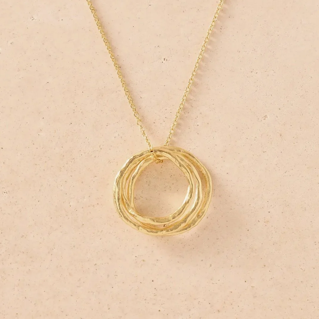 Selina Hoop Necklace was designed as a single ring looped into three imperfect circles, symbol of unity and interconnectedness of the elements that surround us.