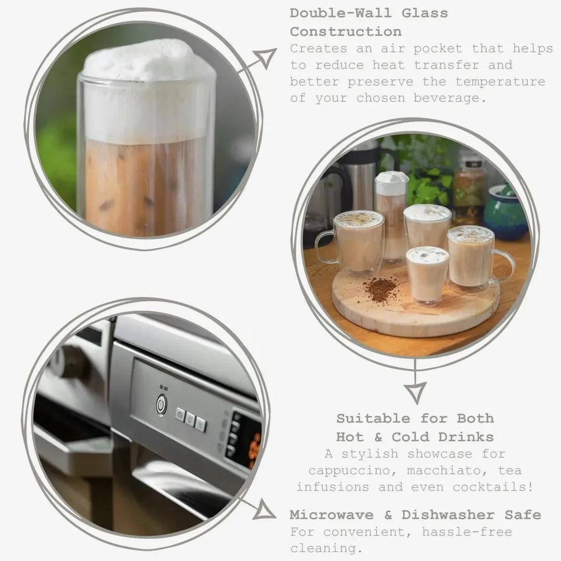 Double-Wall Glass Construction - Creates an air pocket that helps to reduce heat transfer and better preserve the temperature of your chosen beverage. Suitable for Both Hot & Cold Drinks